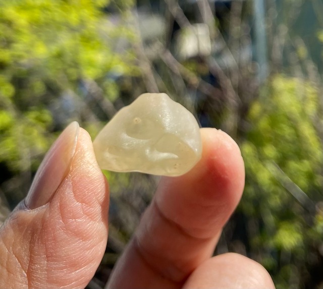 リビアンデザートグラスの原石です。 小さめですがリビアングラスらしい色合いです。 約9グラムで25ミリ×19ミリ×20ミリ程度の大きさです。 画像のものをお届けします。