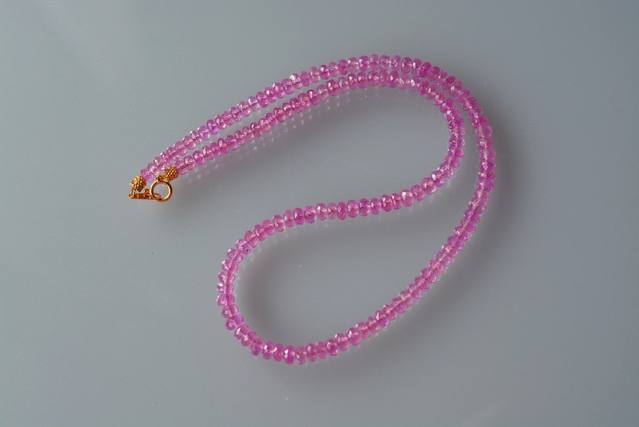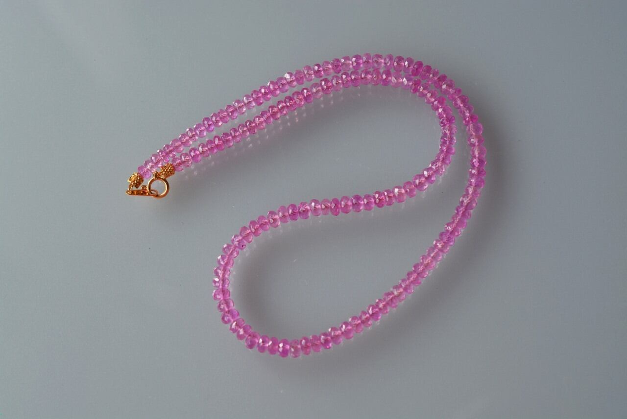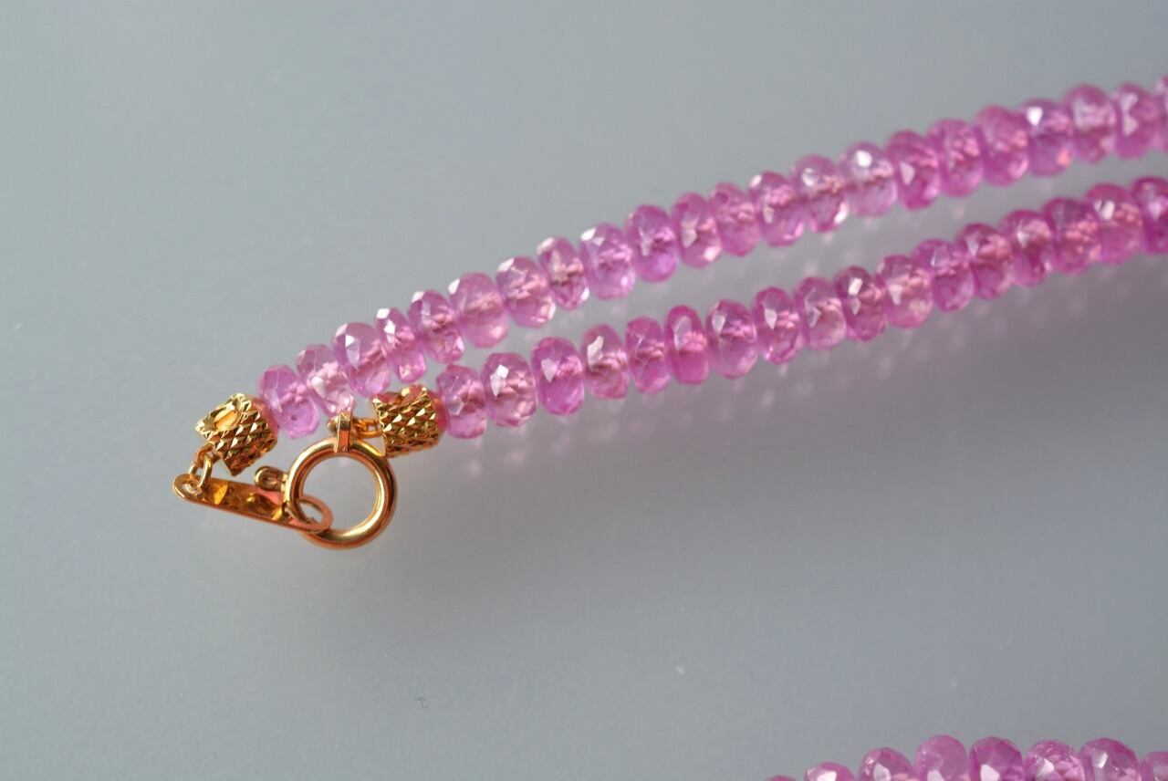 ピンクサファイアのボタンカットネックレス
